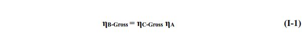 To summarize the Calculational Closure procedure (refer to Section IX for further discussion), the gross computed boiler efficiency is calculated by dividing its definition into two components, a combustion efficiency and boiler absorption efficiency: